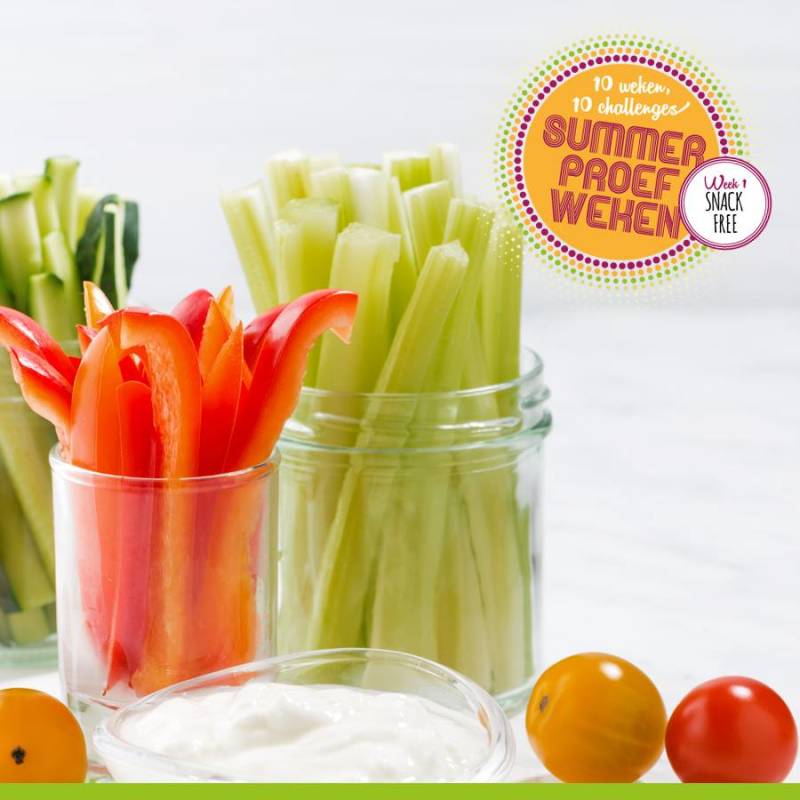 Gezond tussendoortje: Varieer er lekker op los met stukjes fruit en groente. Banaan en appel zijn lekker met een likje notenpasta en stukjes bleekselderij en wortel doen het goed met een klein likje hummus. Ideetje voor morgen?